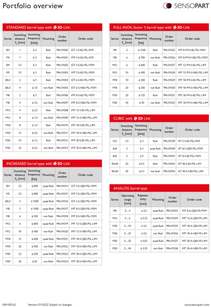 Inductive sensor Ø 4 mm / standard switching distance | Endüktif Sensörler ⋅ Sensopart | ||